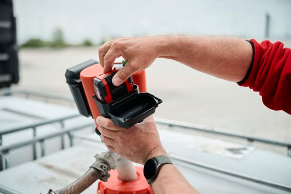 Le moteur est sans balais, sans entretien, a une puissance de 420 watts et sa vitesse est réglable. Il est conçu pour une utilisation dans le monde entier et, grâce à un adaptateur, il est également compatible avec les Pompes vide-fût d'autres fabricants. Deux batteries 18 V 4,0 Ah assurent une durée de fonctionnement particulièrement longue.